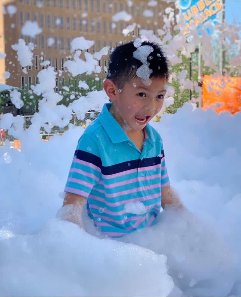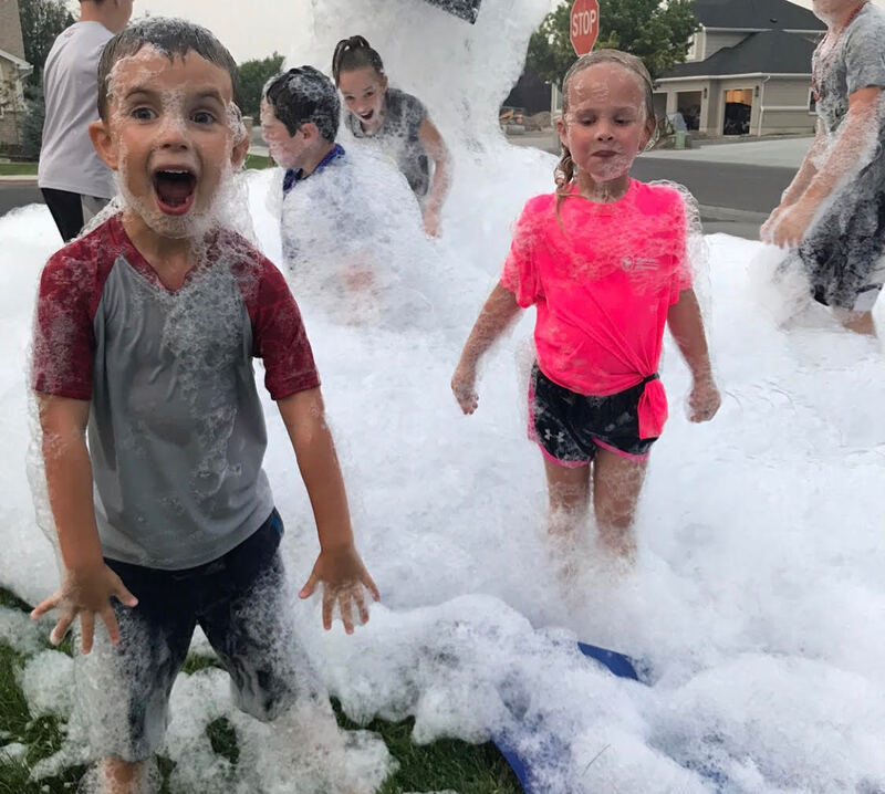 Well, it’s bubbly for sure, but it’s nothing like taking a bubble bath! Depending on the individual enthusiasm level, participants will range from dry to damp, to soaking wet. It’s superb summer happiness! We recommend folks bring a towel or change of clothes, just in case the foam gets them more excited than they anticipated!